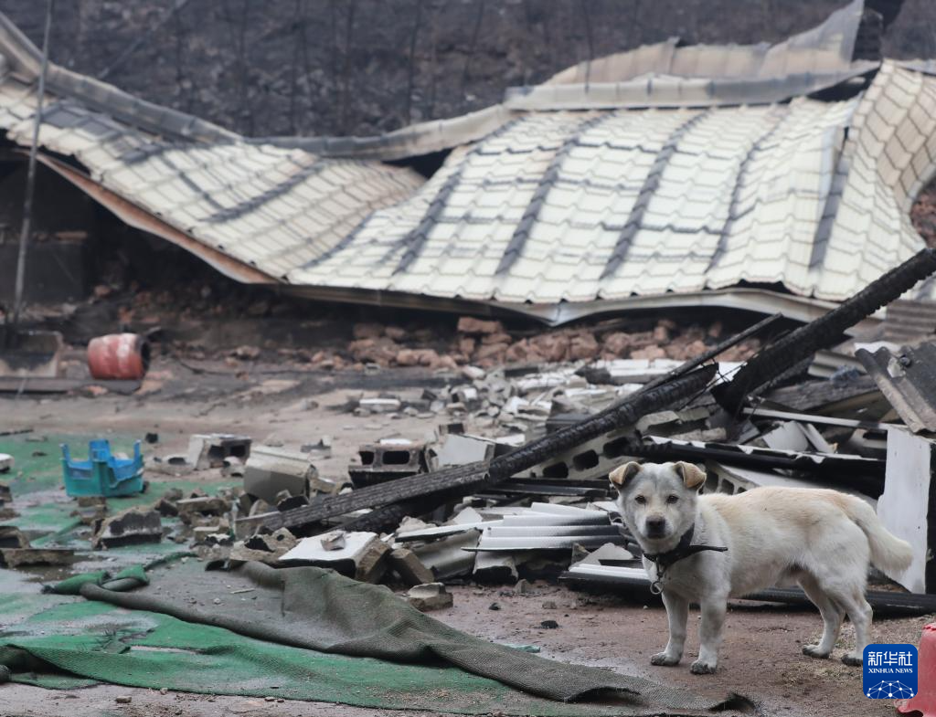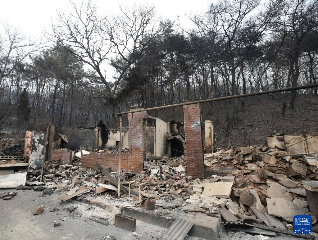 这是3月27日在韩国庆尚北道安东市拍摄的被大火烧毁的房屋。
