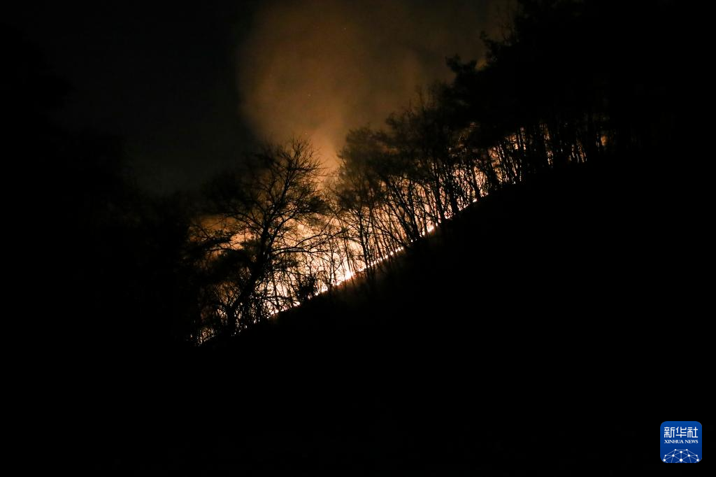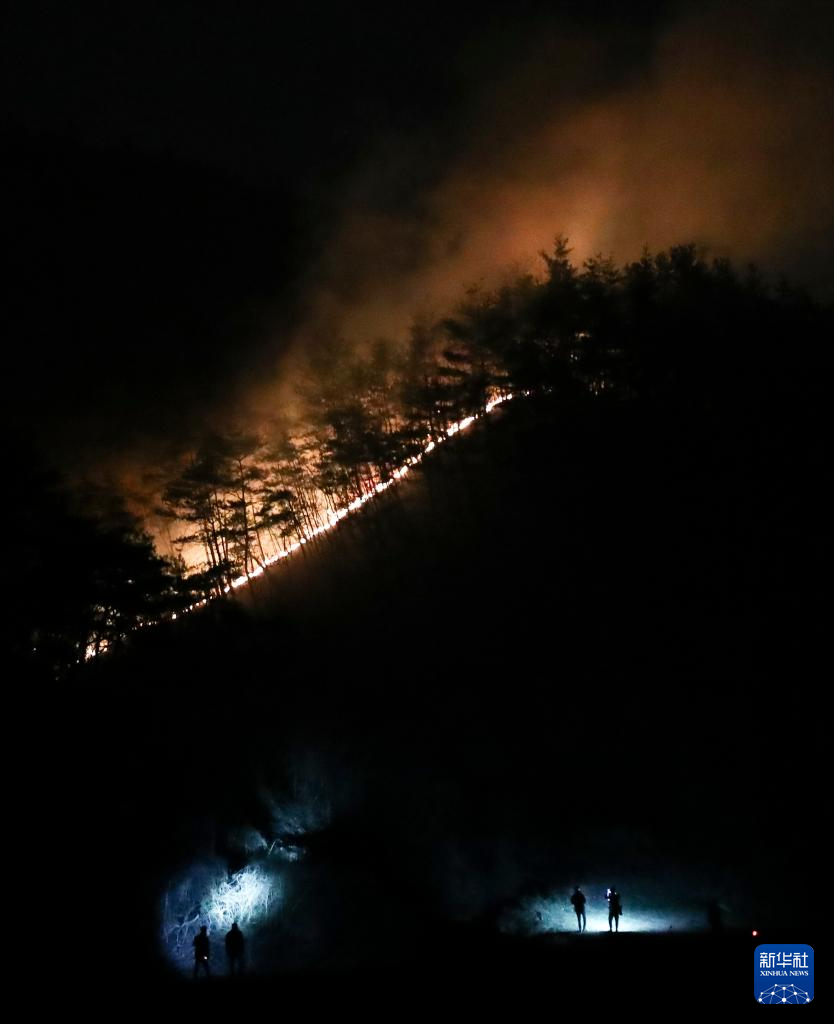 这是3月27日晚拍摄的韩国庆尚北道青松郡山火现场。