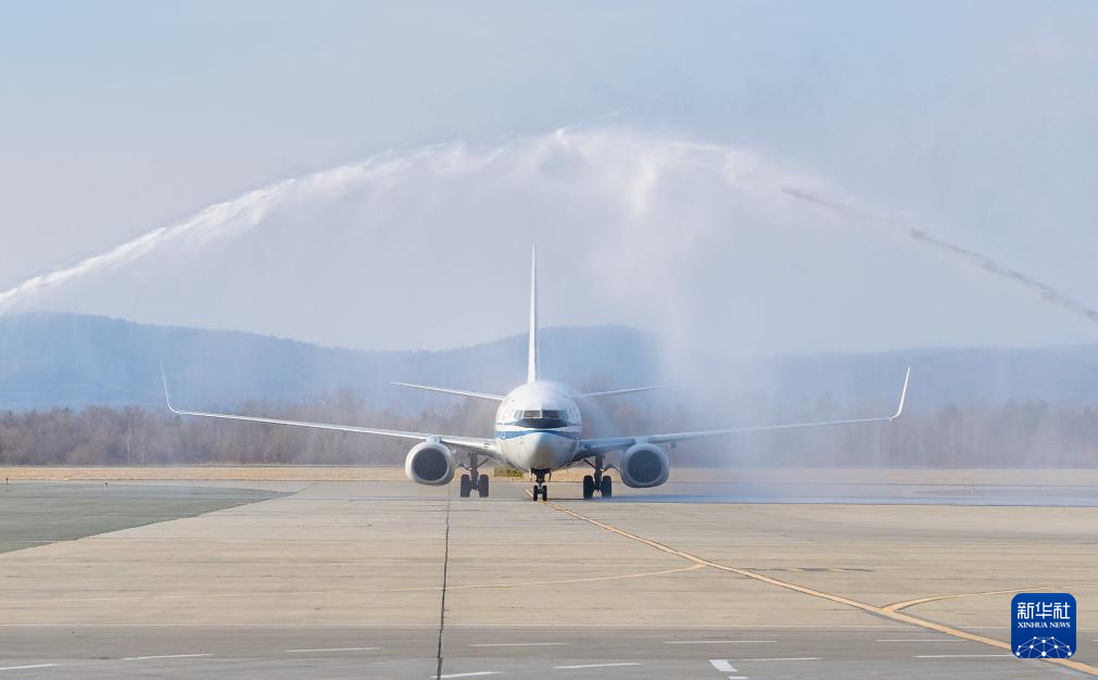 3月31日,北京-符拉迪沃斯托克航线首航班机降落在俄罗斯符拉迪沃斯托克国际机场。