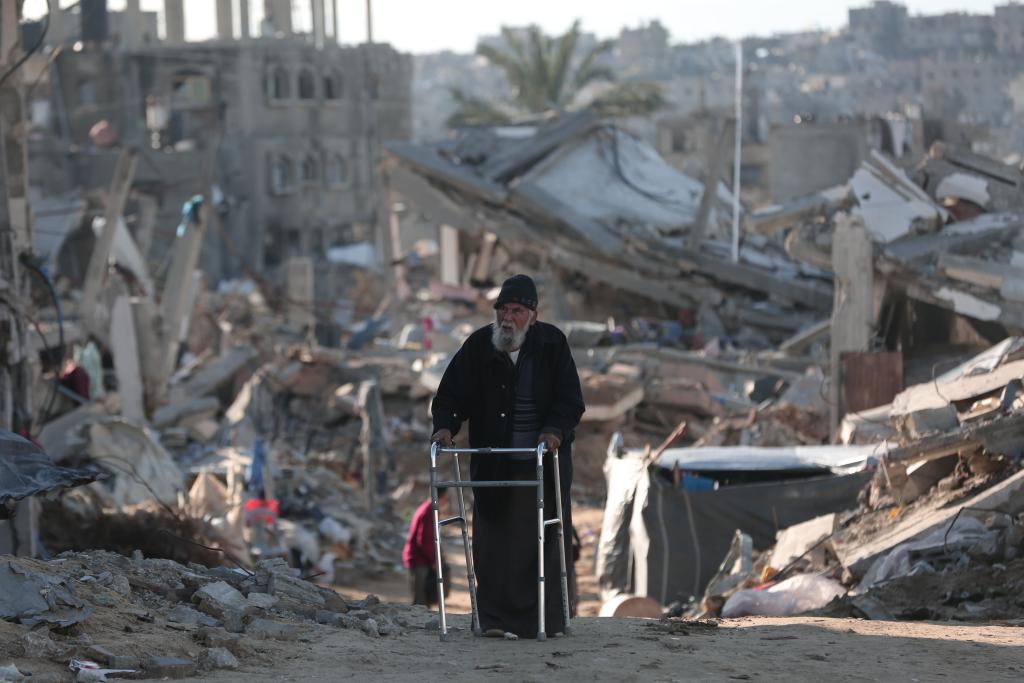 3月22日,一名从加沙地带北部拜特拉希耶撤离的巴勒斯坦老人经过加沙城。新华社发(阿卜杜勒·拉赫曼·萨拉马摄)