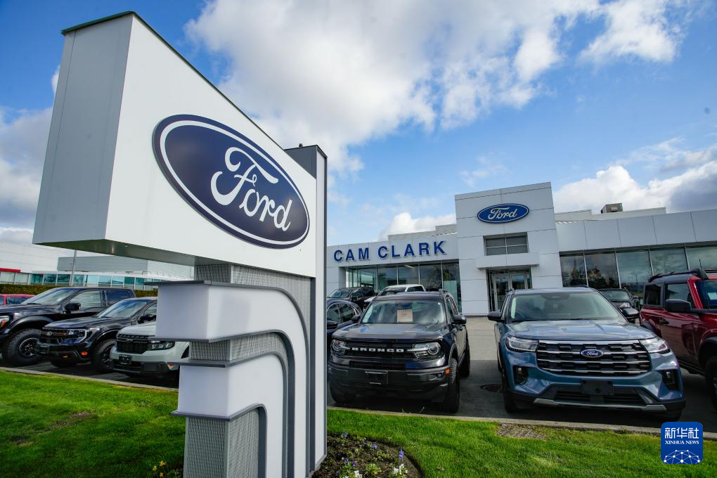4月3日,车辆陈列在加拿大温哥华一家福特汽车经销商店面外。