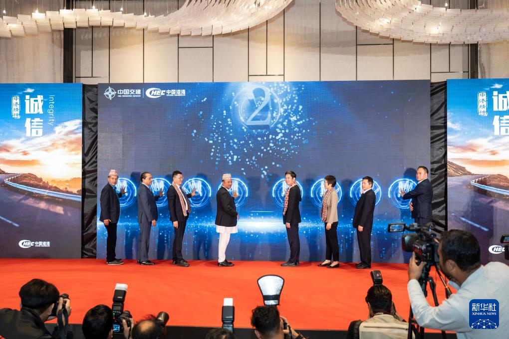 4月9日,在尼泊尔加德满都,嘉宾在正式运营仪式上共同启动三金考拉水电站项目运营。