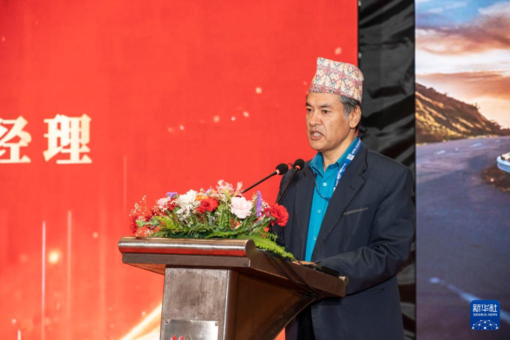 4月9日,在尼泊尔加德满都,尼泊尔电力局总经理希滕德拉·德夫·沙基亚在正式运营仪式上致辞。