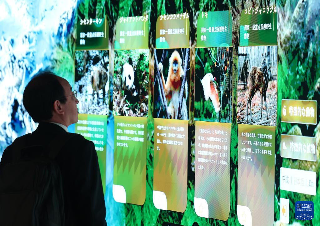 4月13日,在日本大阪,参观者在中国馆内游览体验。