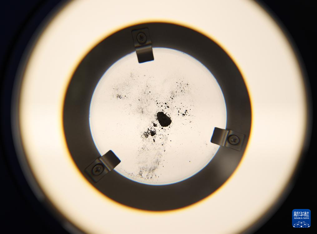 这是4月13日在位于日本大阪的中国馆内拍摄的嫦娥五号探测器采集的月球土壤样品。