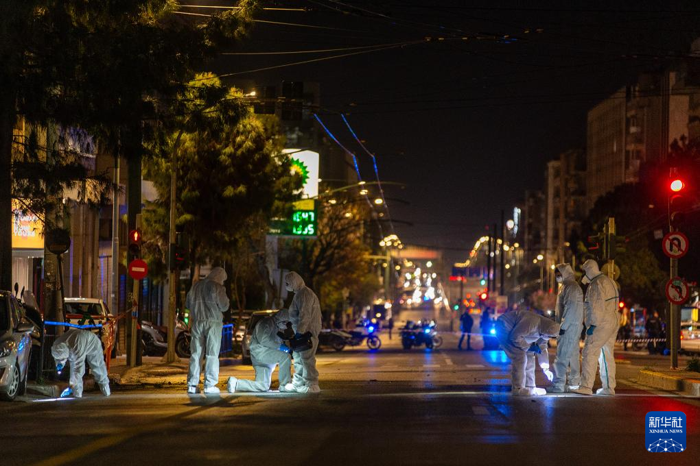 4月11日,在希腊雅典,工作人员调查爆炸现场。 新华社发(马里奥斯·罗洛斯摄)