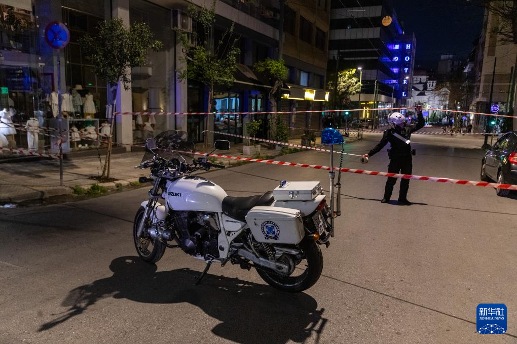 4月11日,在希腊雅典,警方封锁爆炸现场。 新华社发(马里奥斯·罗洛斯摄)