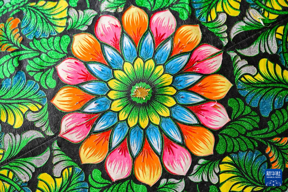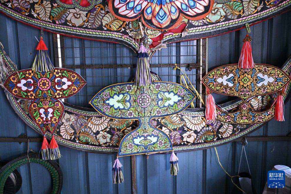 这是3月27日在马来西亚吉兰丹州哥打巴鲁市附近的村子里拍摄的风筝的局部花纹。
