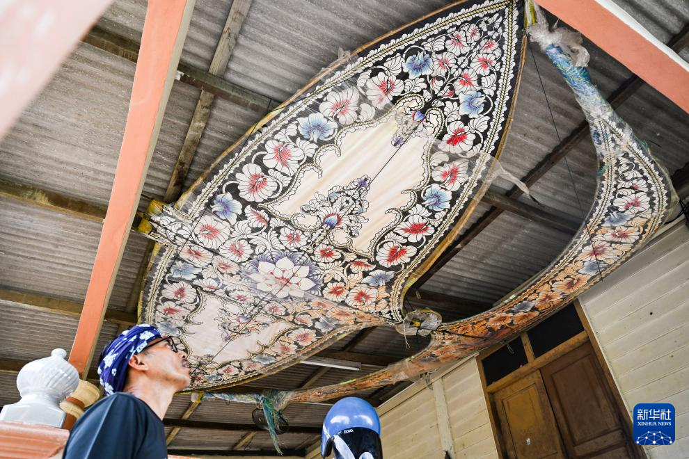 这是3月27日在马来西亚吉兰丹州哥打巴鲁市附近的村子里拍摄的风筝。