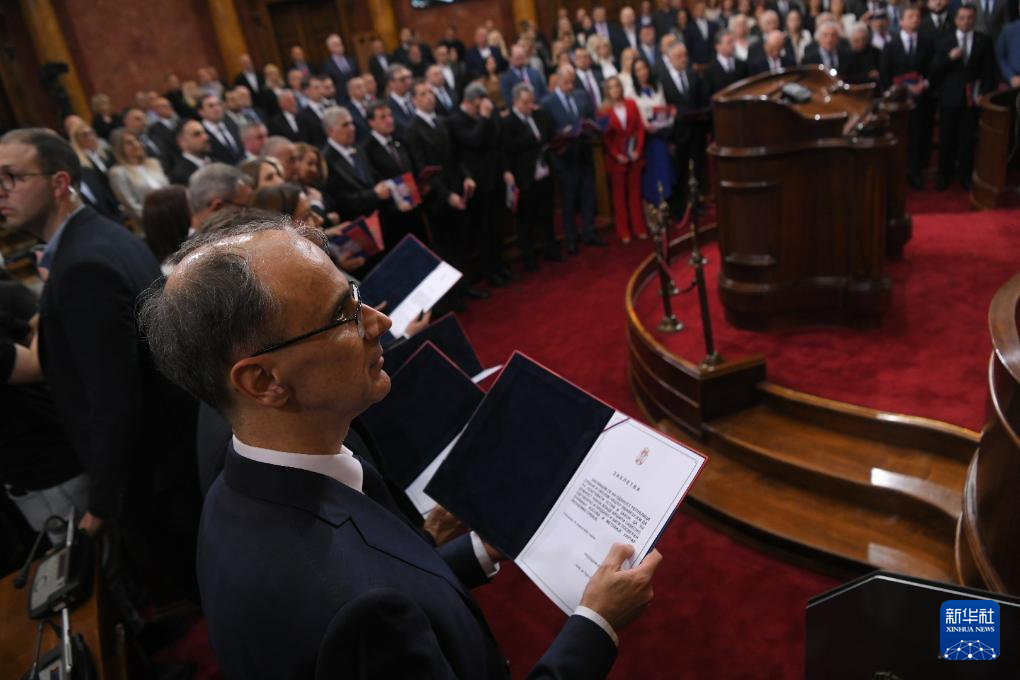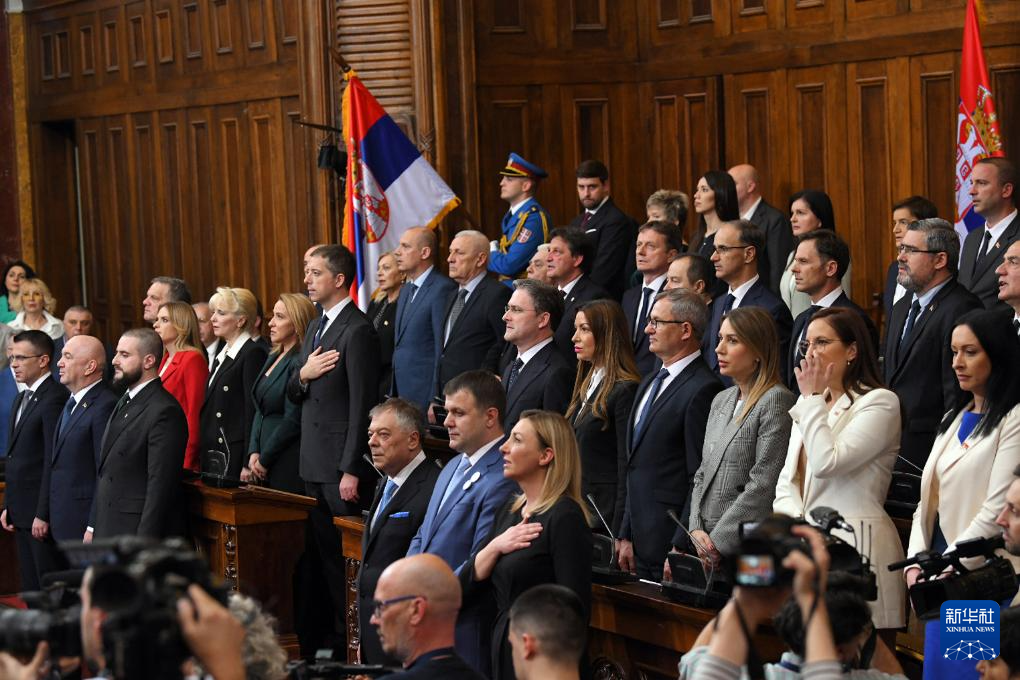 4月16日,塞尔维亚新内阁成员在贝尔格莱德的国民议会宣誓就职。