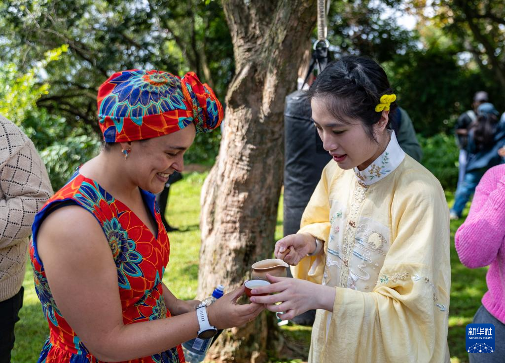 4月17日,在南非约翰内斯堡,学生在“国际中文日”活动上体验中国茶艺。
