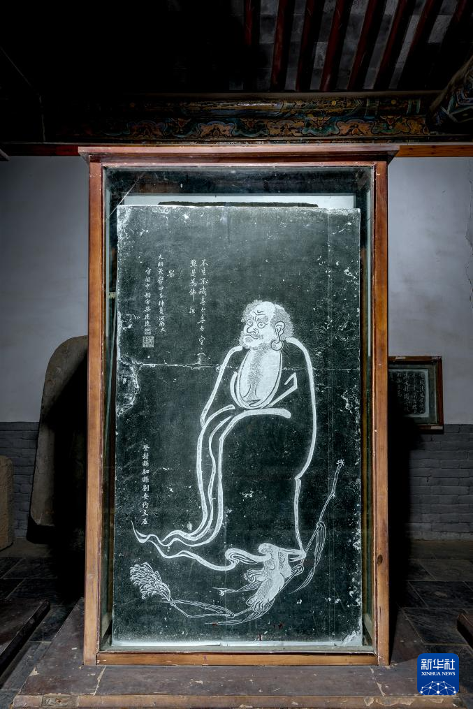 这是位于少林寺的《达摩一苇渡江像》碑(资料图片)。
