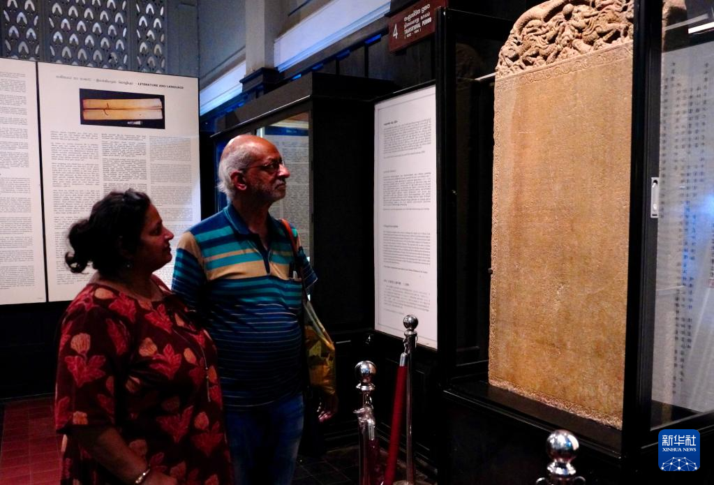 4月17日,在斯里兰卡科伦坡国家博物馆,观众参观郑和遗存《布施锡兰山佛寺碑》。