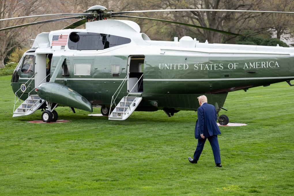 3月28日,在美国首都华盛顿,美国总统特朗普走向停在白宫南草坪的直升机。新华社记者胡友松摄