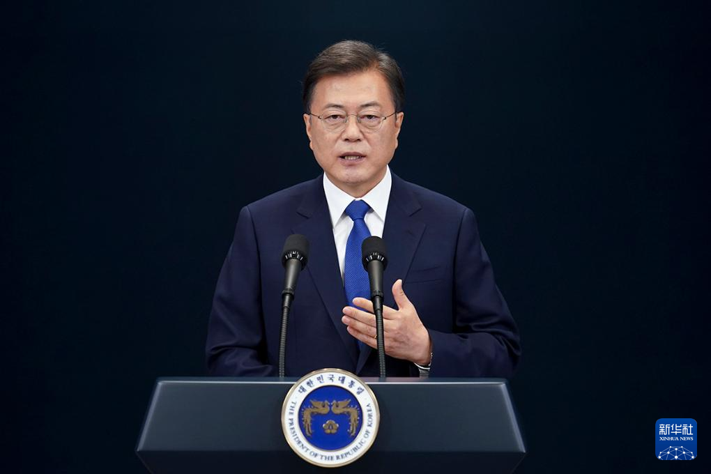 这张拍摄于2020年5月10日的资料照片显示,时任韩国总统文在寅在韩国首尔青瓦台发表讲话。