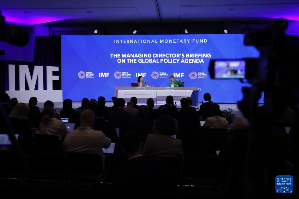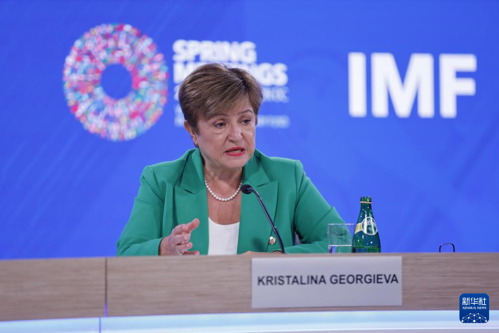 4月24日,国际货币基金组织(IMF)总裁格奥尔基耶娃在美国华盛顿出席媒体发布会。