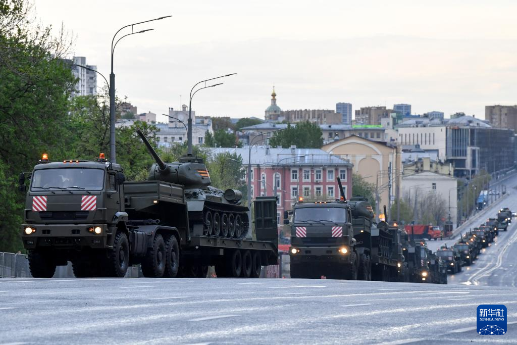 当日,莫斯科举行卫国战争胜利日阅兵式彩排。