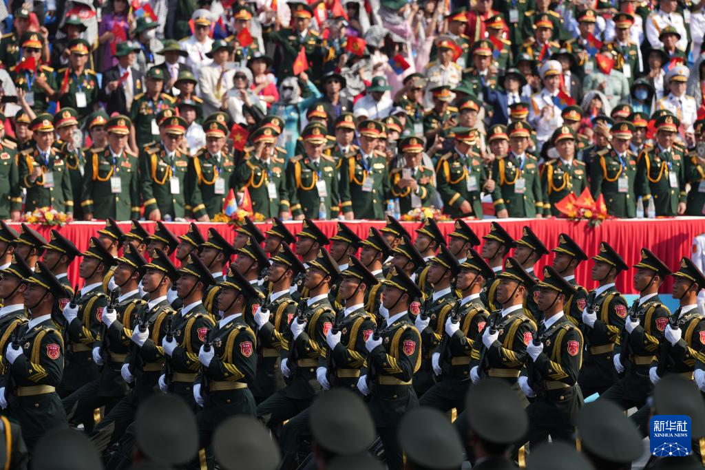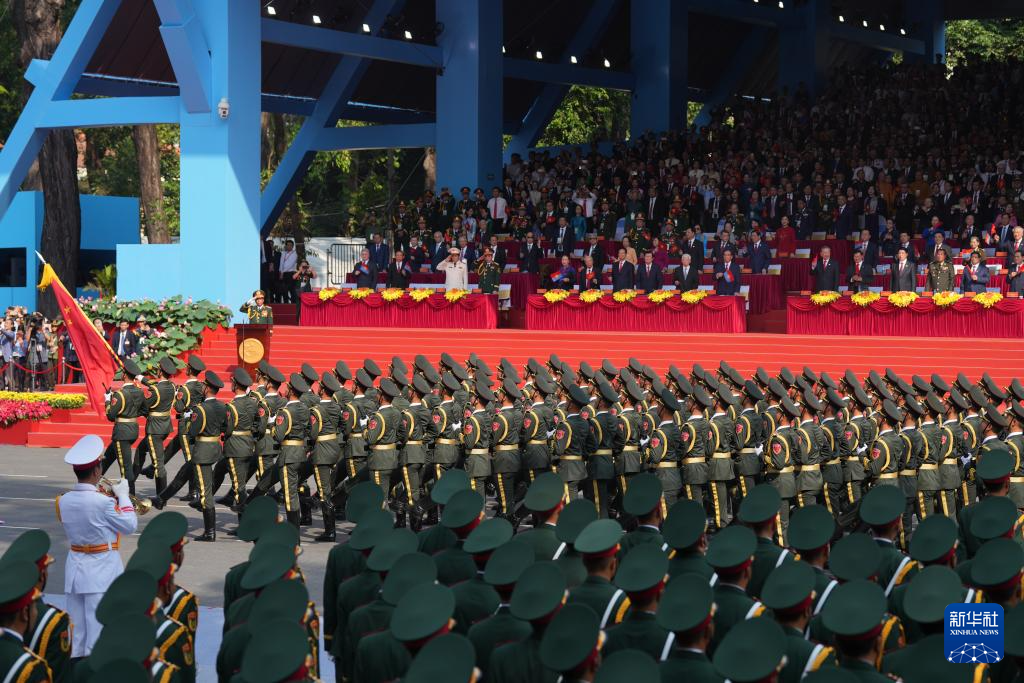 4月30日,在越南胡志明市,中国人民解放军仪仗司礼大队抽组仪仗分队参加越南纪念南方解放50周年庆典活动。