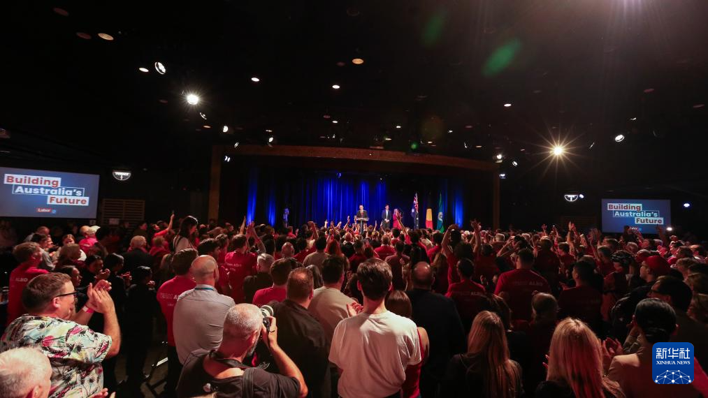 5月3日,在澳大利亚悉尼,工党支持者在竞选集会上庆祝胜利。
