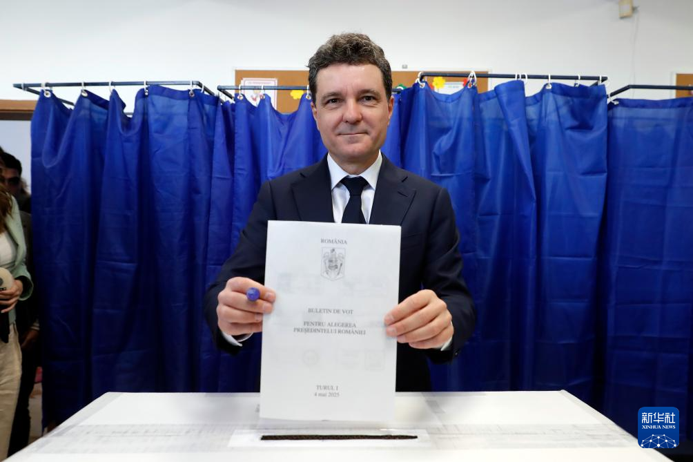 5月4日,布加勒斯特市长尼库绍尔·达恩在罗马尼亚首都布加勒斯特一处投票站参加总统选举投票。