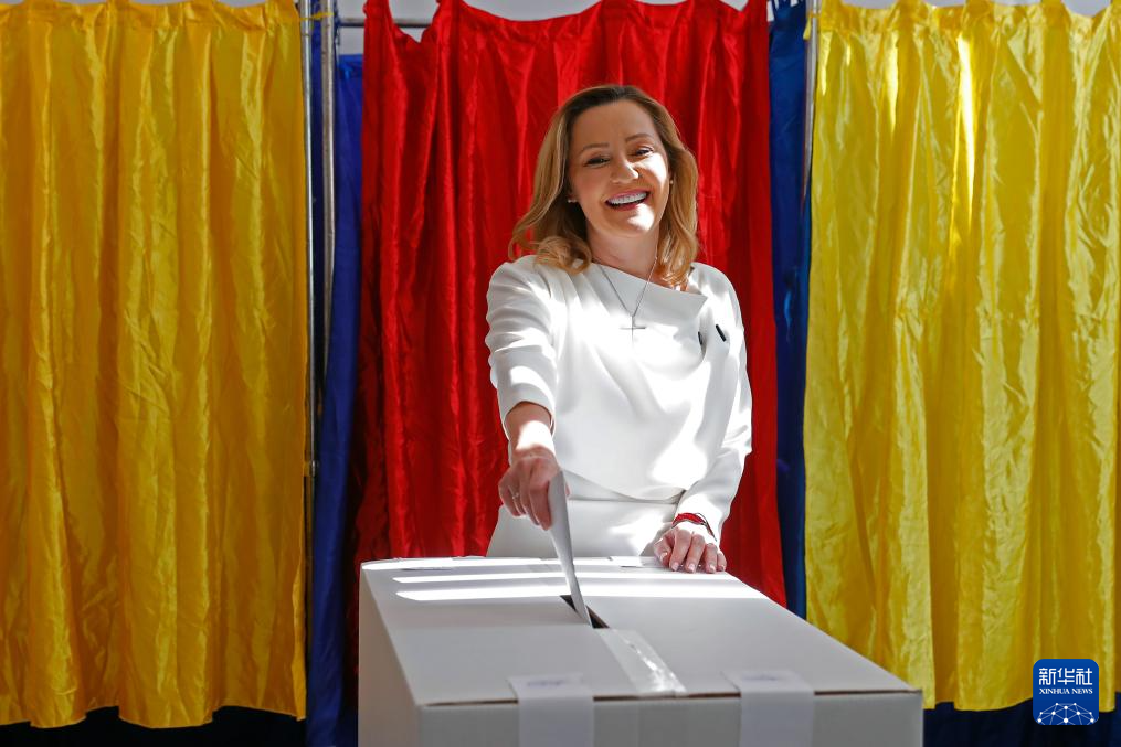 5月4日,拯救罗马尼亚联盟党主席埃列娜·拉斯科尼在首都布加勒斯特一处投票站参加总统选举投票。