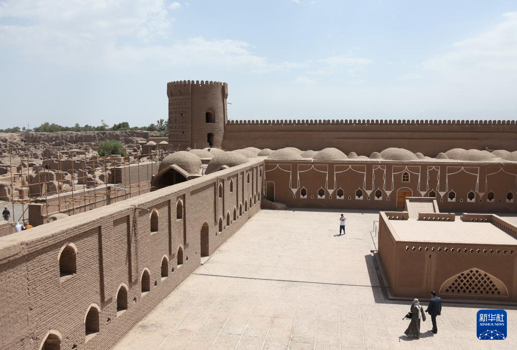 5月3日,游客在伊朗克尔曼省的巴姆古城遗址游览。