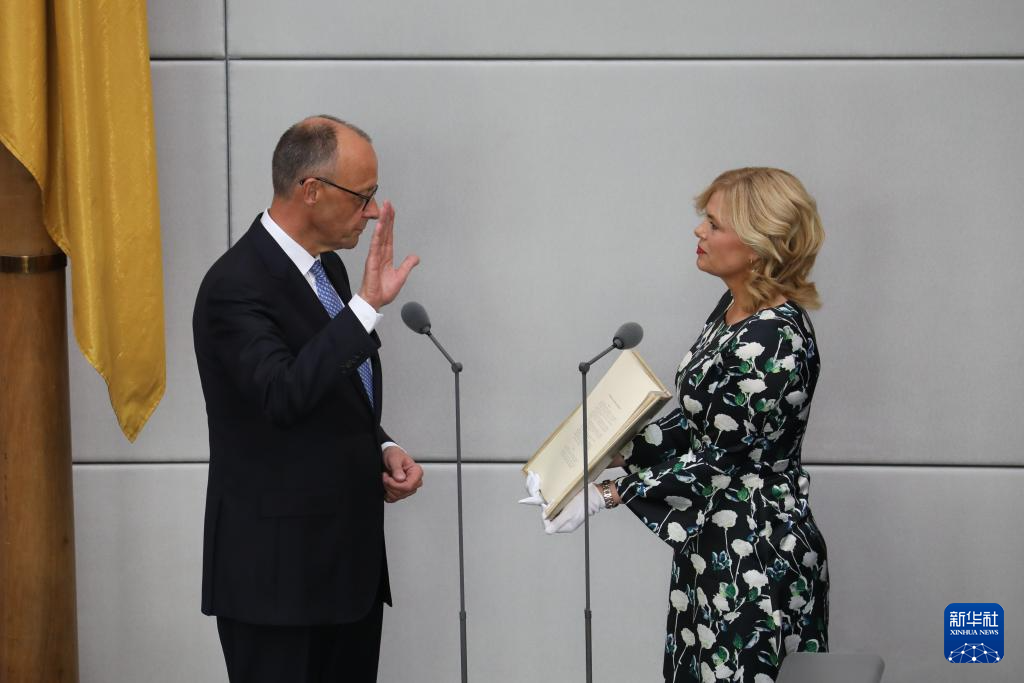 5月6日,在德国首都柏林的国会大厦,默茨(左)宣誓就职。