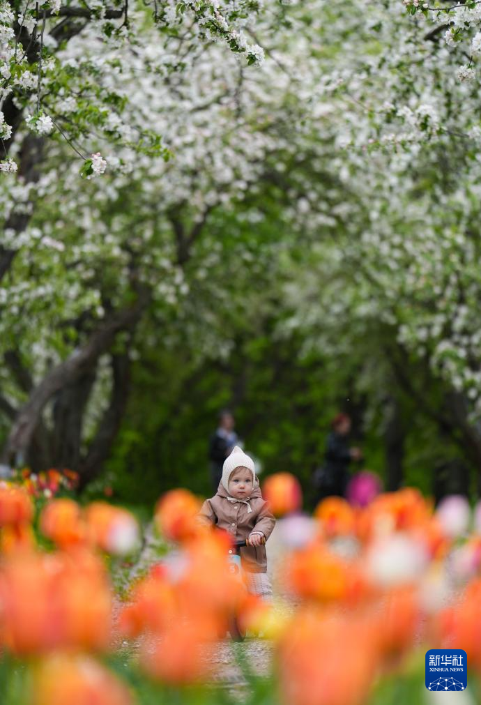 5月5日,在俄罗斯莫斯科,人们在科罗缅斯克庄园内休闲。