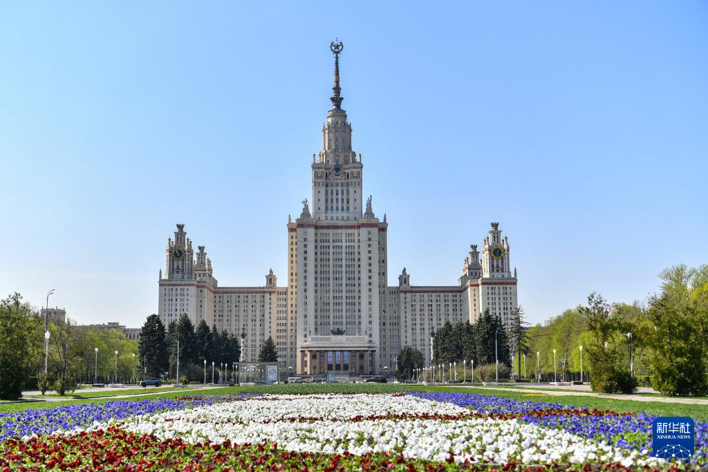 这是5月5日拍摄的俄罗斯莫斯科大学主楼。