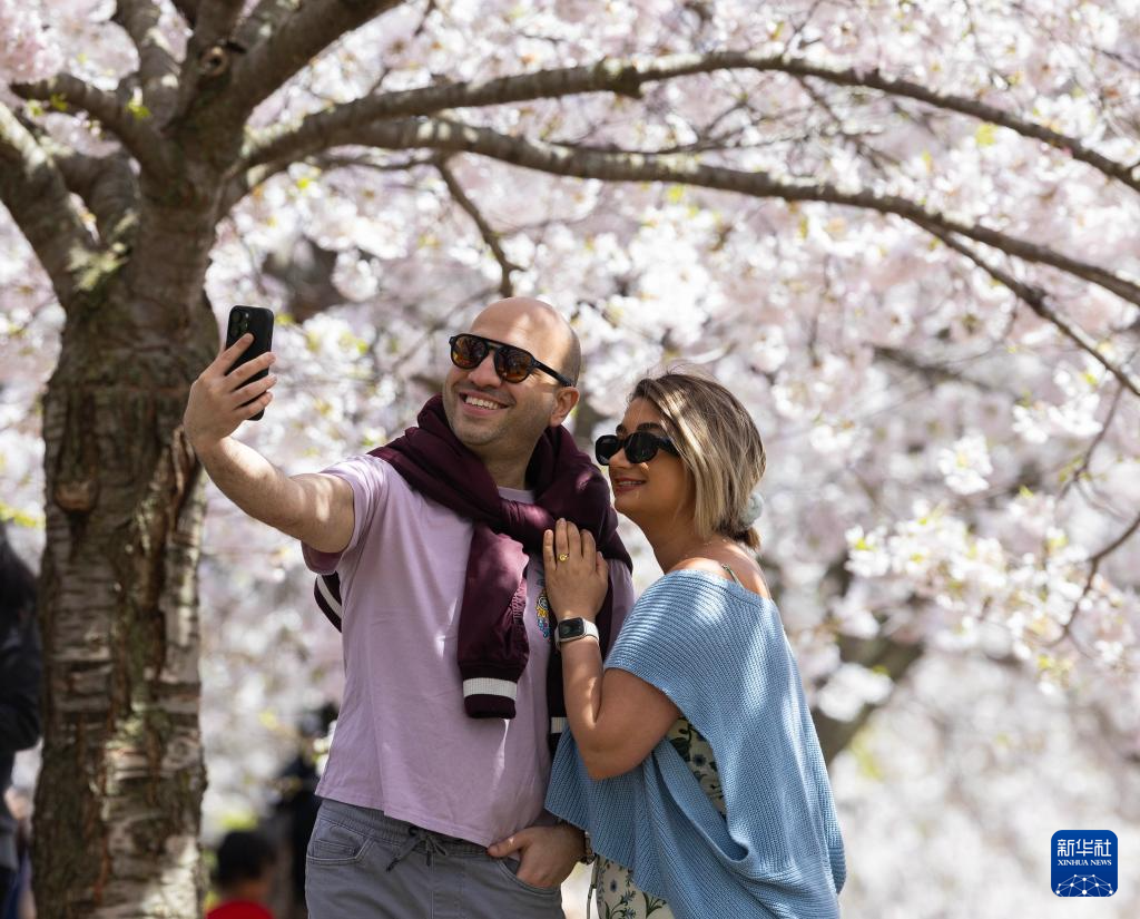 多伦多:樱花盛放-5月6日,人们在加拿大多伦多的一处公园内欣赏盛开的樱花。'...