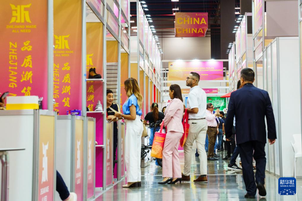 2025年3月26日,在巴拿马首都巴拿马城的第41届国际贸易博览会上,人们参观中国馆展位。