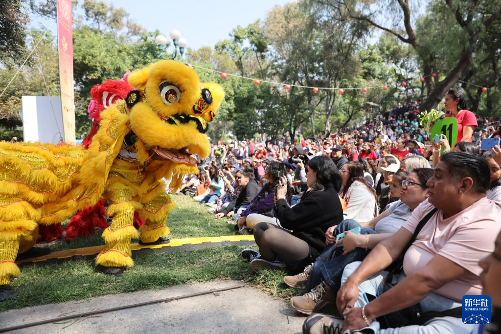 2025年1月25日,在墨西哥首都墨西哥城,人们在第四届中国新年文化节上观看舞狮表演。