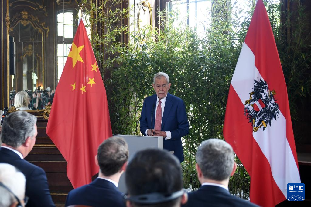 5月14日,在奥地利首都维也纳的美泉宫动物园,奥地利总统范德贝伦在欢迎仪式上致辞。