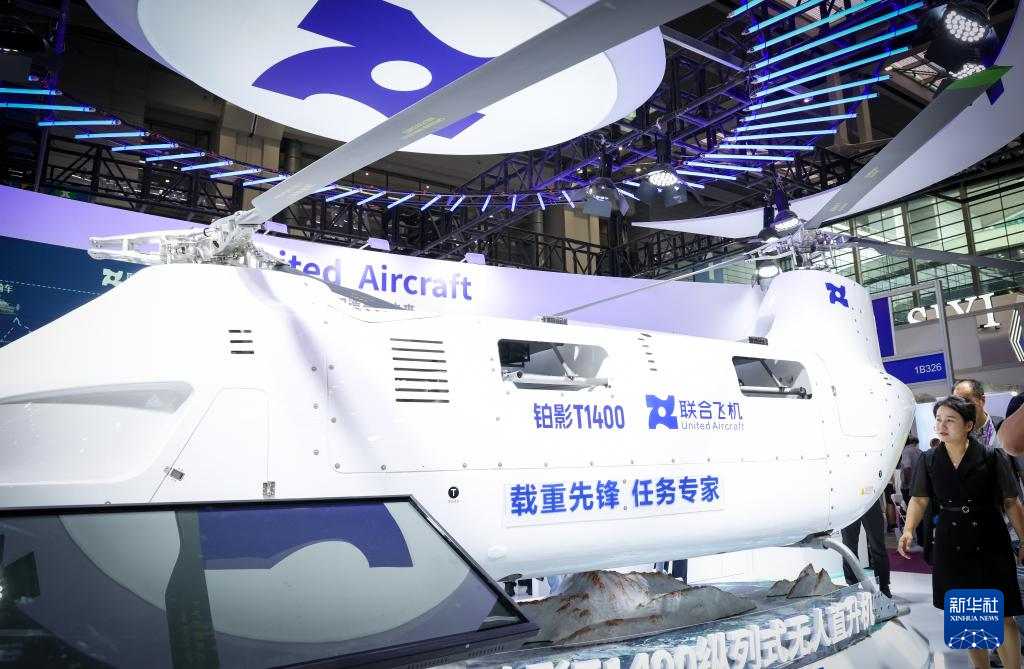 5月23日,参会者了解一款新品纵列式无人直升机。