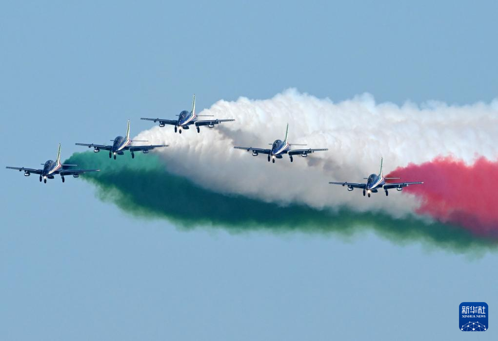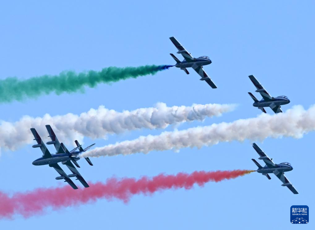 当日,意大利“三色箭”飞行表演队在意大利罗马附近的拉迪斯波利举行的航展上表演。