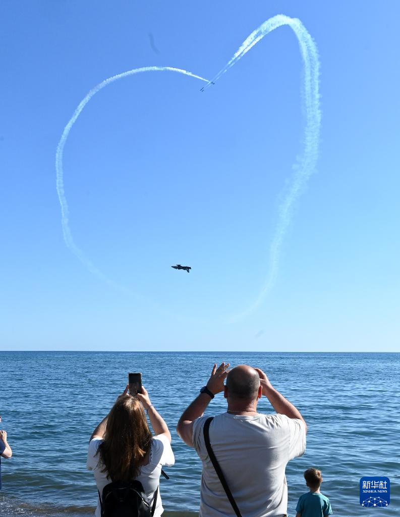 6月1日,人们在意大利罗马附近的拉迪斯波利观看飞行表演。