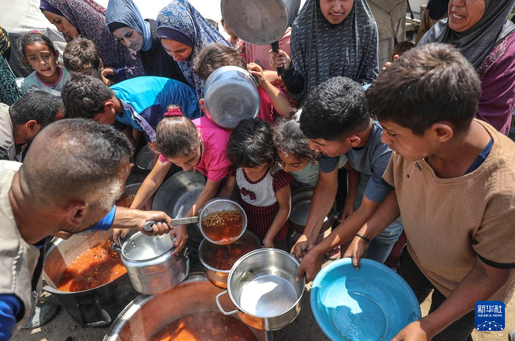 6月3日,巴勒斯坦人在加沙城领取食物。