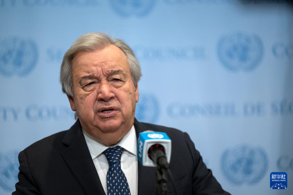 6月5日,在位于纽约的联合国总部,联合国秘书长古特雷斯在缅怀2024年因公殉职工作人员追悼仪式前的记者见面会上讲话。