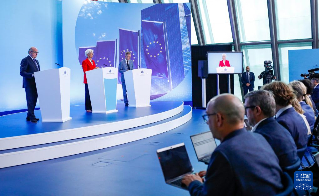 6月5日,欧洲中央银行行长拉加德出席在德国法兰克福欧洲央行总部举行的新闻发布会。
