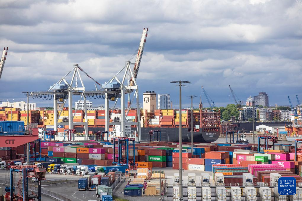 5月28日,一艘集装箱货轮停靠在德国汉堡港口与物流股份公司旗下的汉堡港CTT集装箱码头。新华社记者 张帆 摄