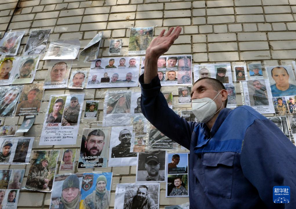6月12日,乌克兰军人家属在医疗救助点举着失踪人员海报寻求帮助。