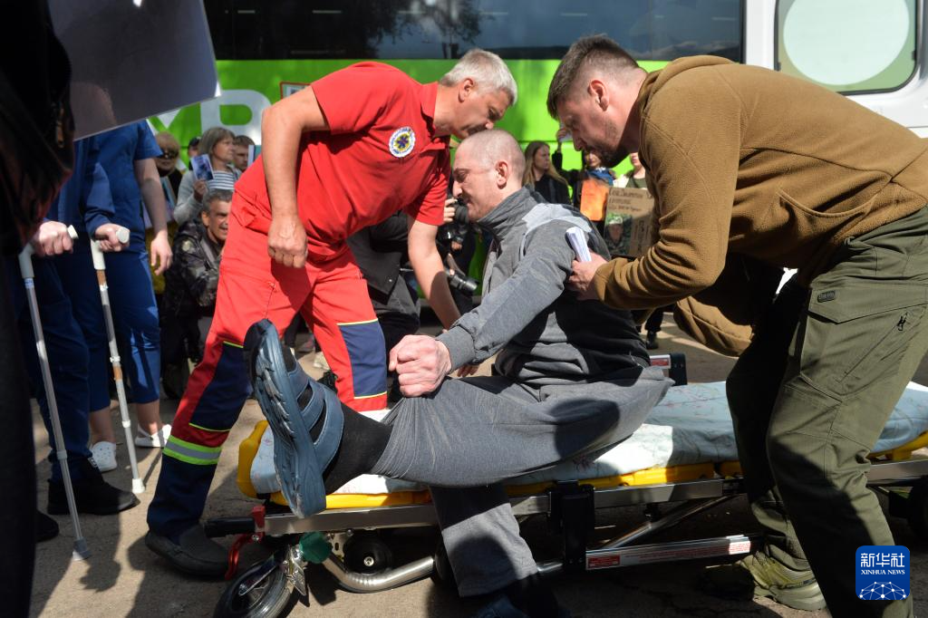 6月12日,被释放的乌军人员乘车抵达医疗救助点。