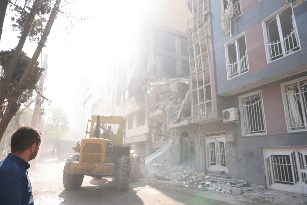 6月13日,在伊朗首都德黑兰,救援人员清理在以军袭击中受损的建筑。新华社发