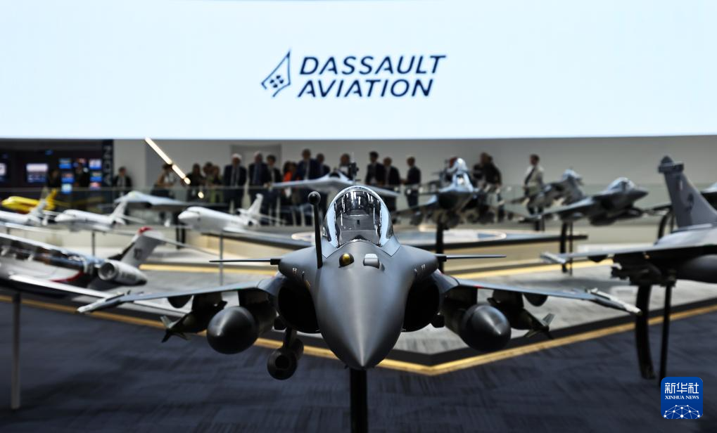 6月17日,在法国巴黎近郊布尔歇机场举行的第55届巴黎航展上,人们参观达索公司展区。