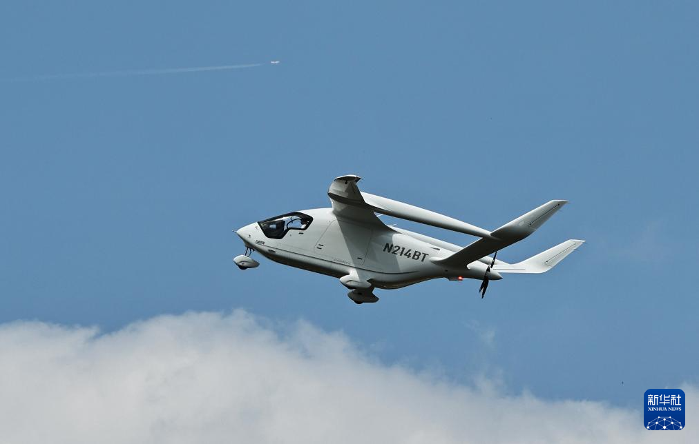 6月17日,在法国巴黎近郊布尔歇机场举行的第55届巴黎航展上,来自美国的BETA TECHNOLOGIES ALIA飞机进行飞行表演。