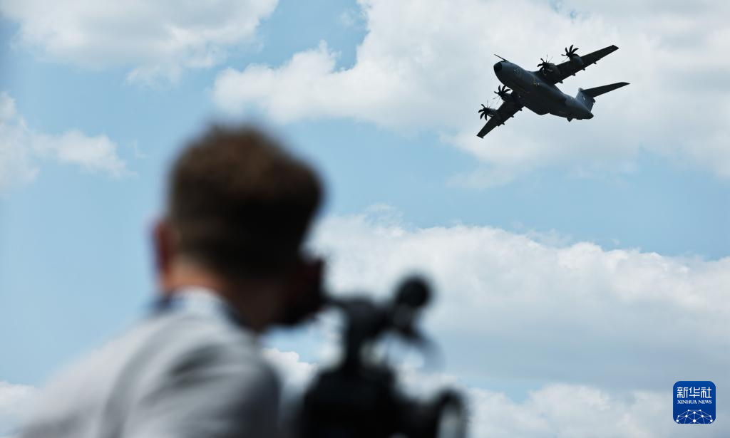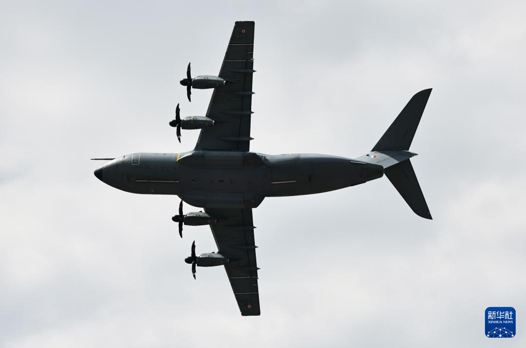 6月17日,在法国巴黎近郊布尔歇机场举行的第55届巴黎航展上,A400M运输机进行飞行表演。