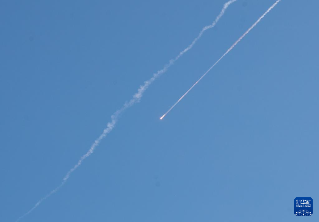6月22日,在耶路撒冷,防空系统发射拦截弹留下烟轨。