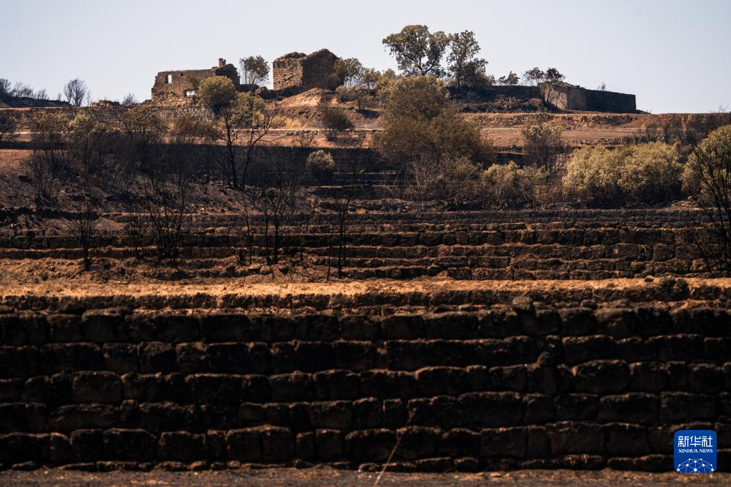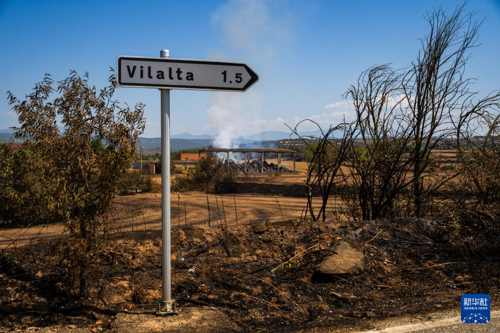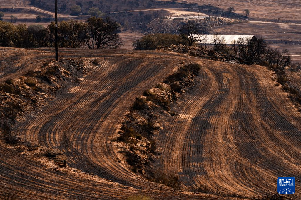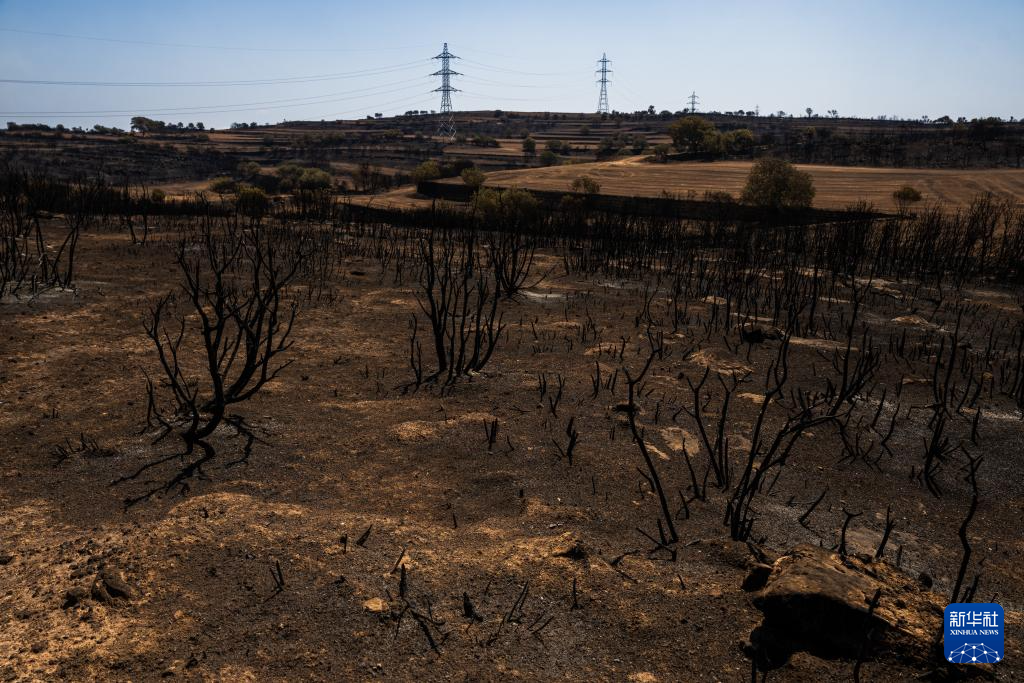 这是7月2日在西班牙列伊达拍摄的森林火灾中被烧毁的土地。
