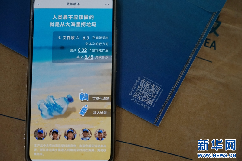 这是扫描废弃海洋塑料制成品上“可视化海塑码”后显示的减排信息(2023年10月30日摄)。新华社记者 林光耀 摄