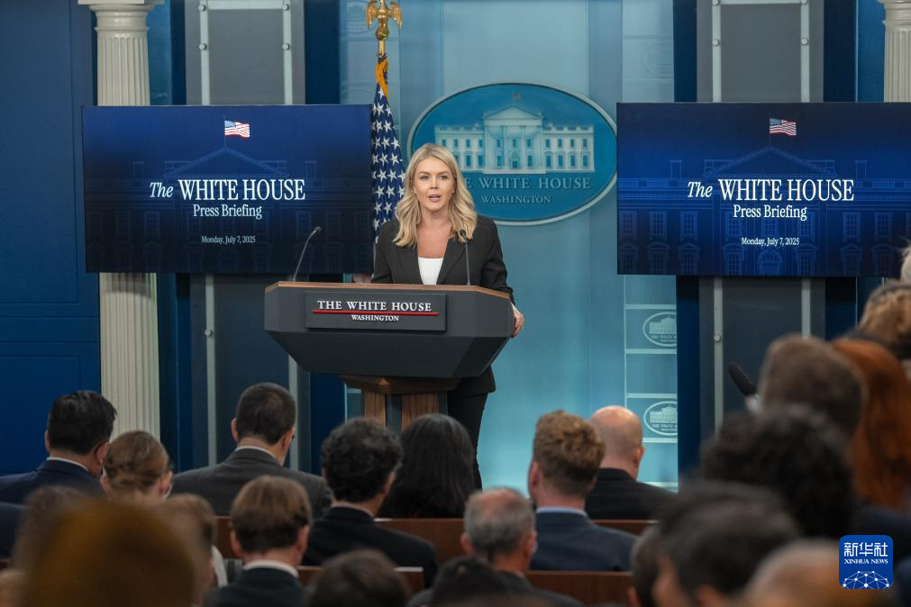 7月7日,在美国首都华盛顿白宫,白宫新闻发言人卡罗琳·莱维特出席记者会。